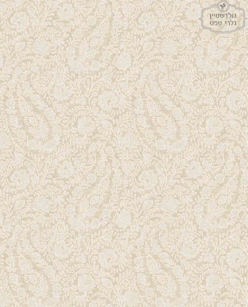 טפט עלים גאומטרי מלכותי מרווה, זהב רקע לבן שמנת