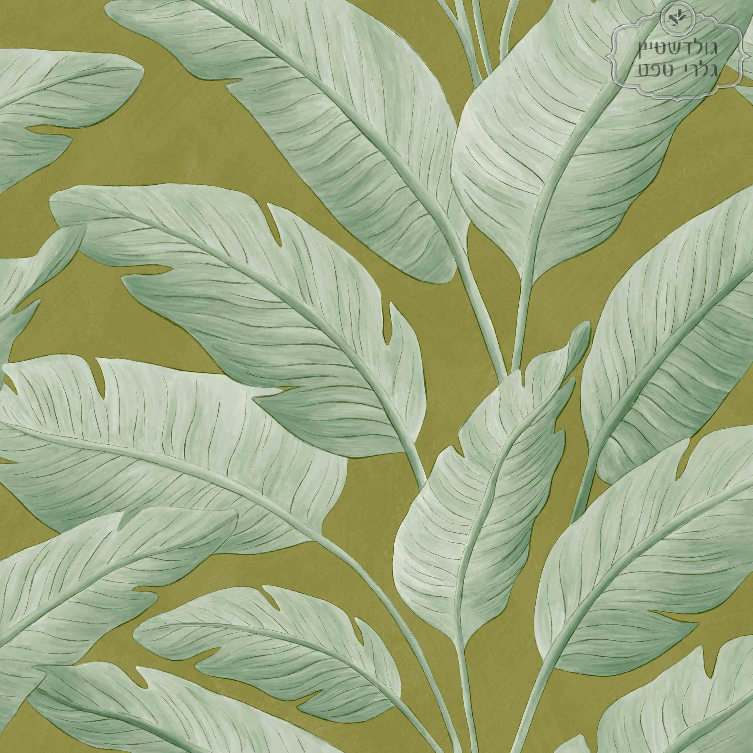 תמונת קיר פרחים ועלים טרופי על רקע אוקר, איכותי במיוחד