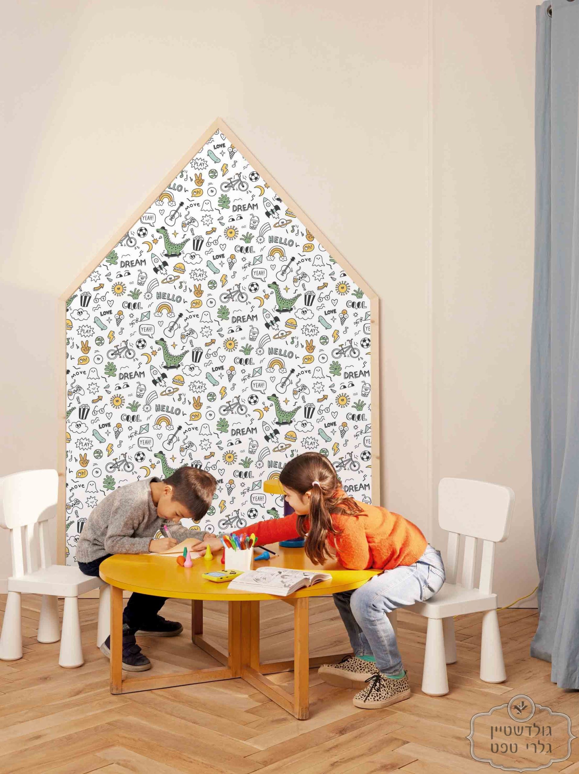 טפט גרפיטי ילדים צבעוני + שחור לבן, אופנים כדורגל גלידה גיטרה דינו וכו,
