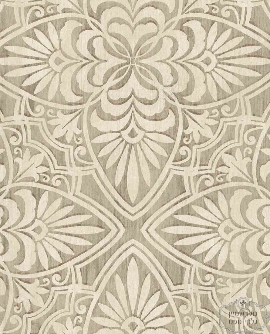 טפט דמוי גילוף עץ הודי, תלת מימדי, גאומטרי, עשוי על ויניל עם טקסטורה דמוי עץ בגוון שמנת – מוקה