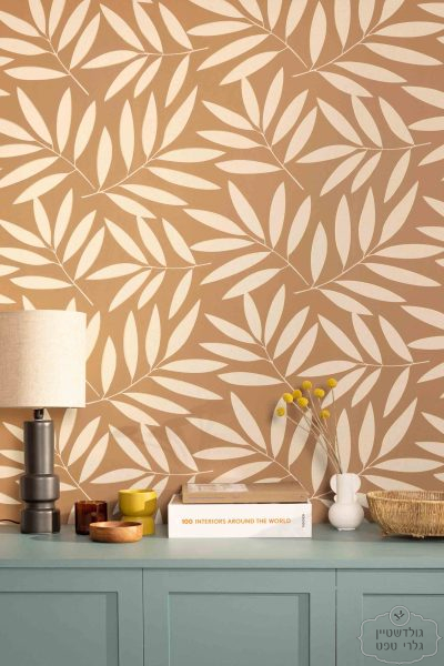 טפט פיפ פרחי משי כחול על רקע חום בהיר