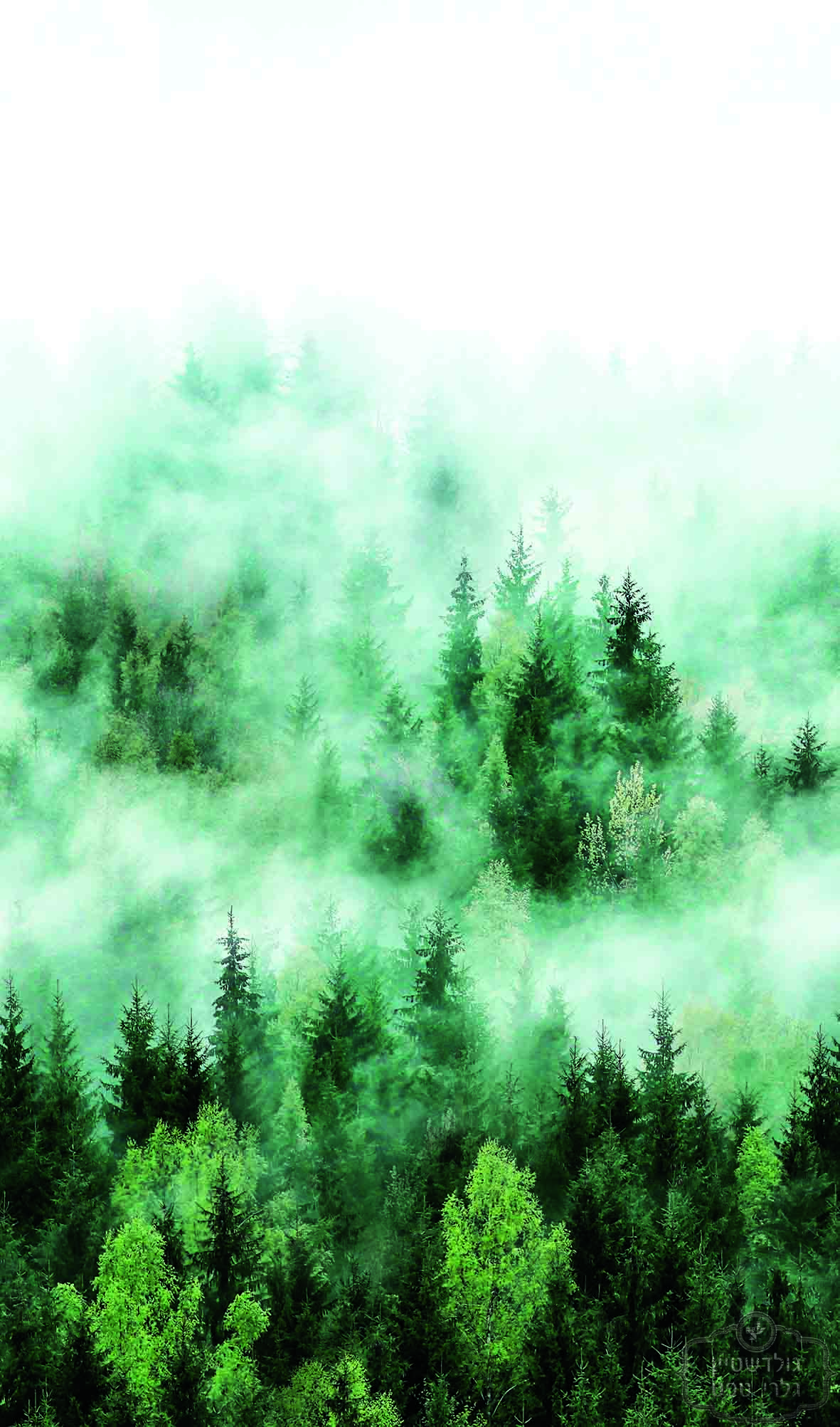 טפט עלים לוקיד ירוק תכלת אוקר כתום על רקע לבן