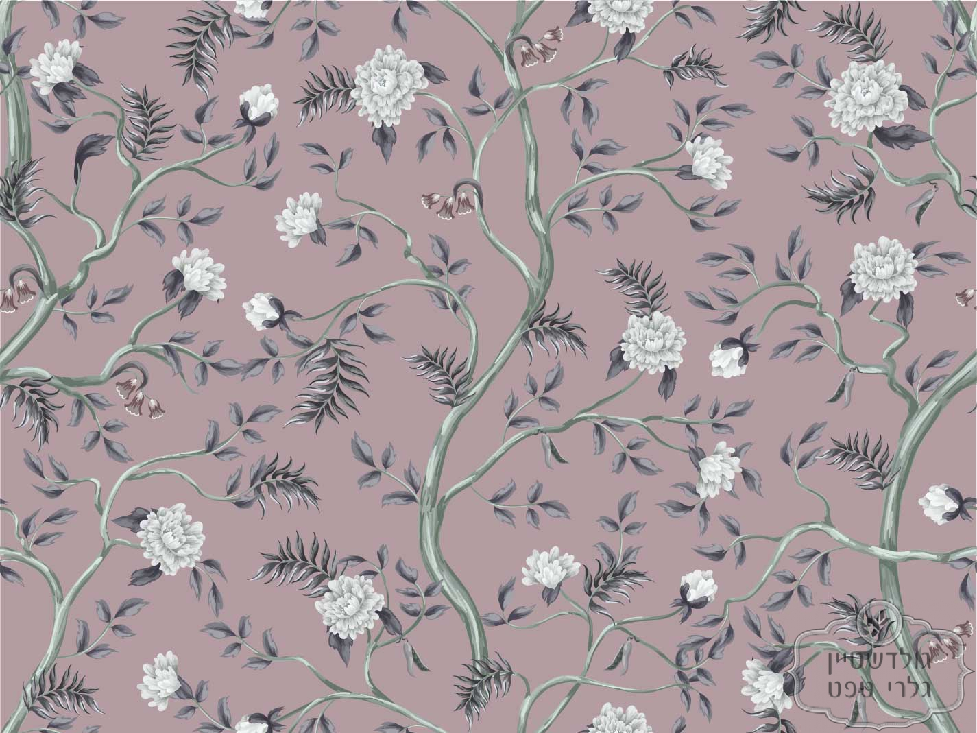 תמונת טפט, עצים פורחים על רקע ורוד עתיק