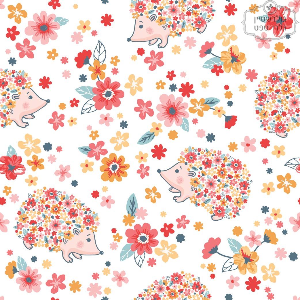 תמונת טפט, קיפודים פרחוני צבעוני על רקע לבן