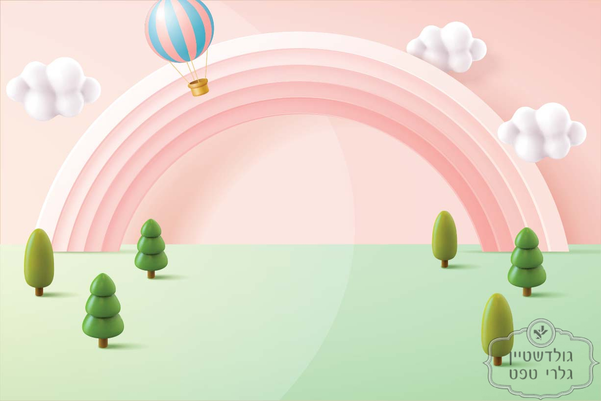 תמונת טפט, קשת צבעונית | כדור פורח | עננים על רקע ורוד ירוק