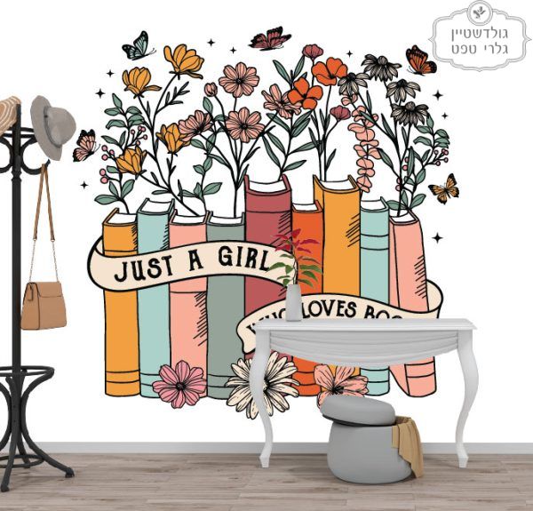 טפט פיפ פנטזיה פרחים כחול ורוד ירוק על רקע טקסטורה גוון ירקרק זית