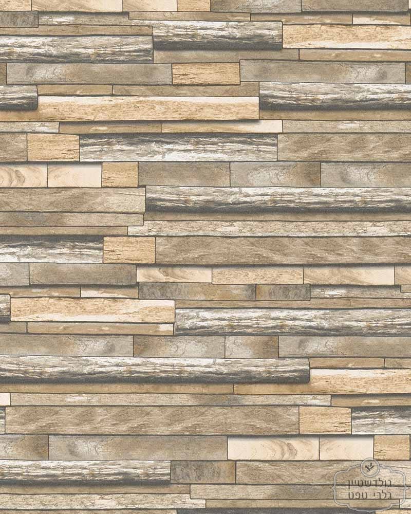 טפט דמוי קיר קורות עץ צפופים בגווני חום בז'