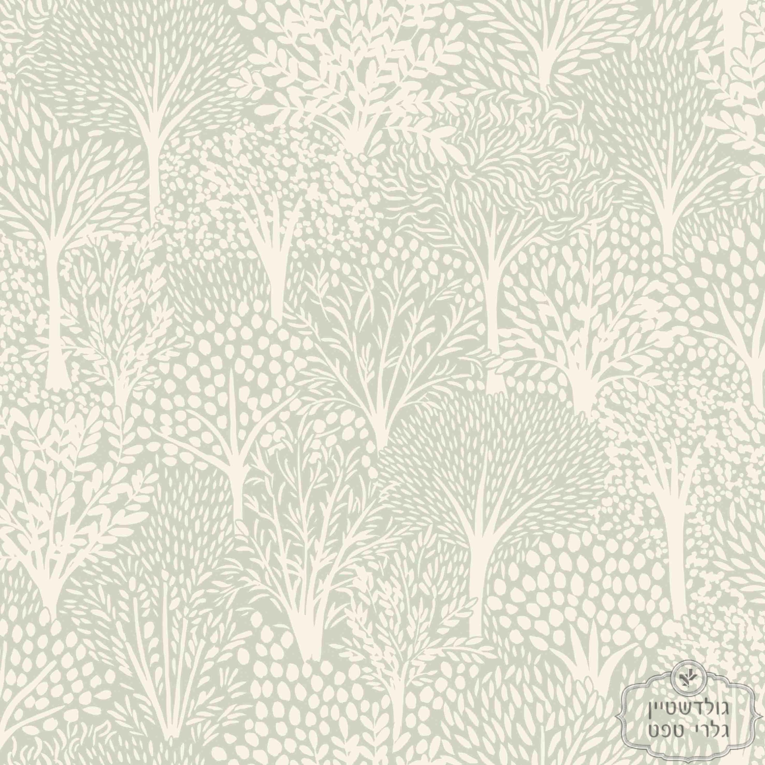 טפט נון וובן עצי אליס בגוון שמנת על רקע ירוק מרווה
