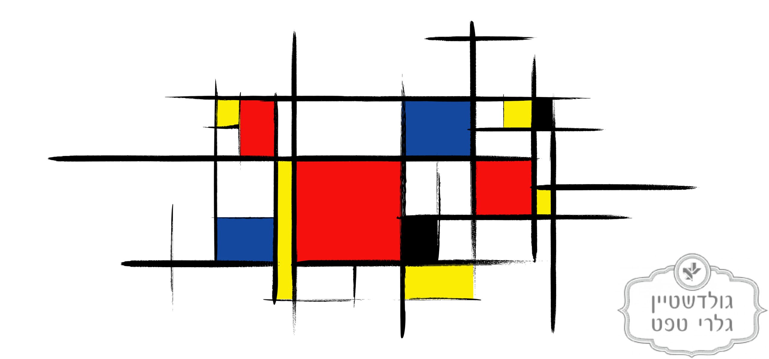 תמונת טפט, ריבועי צבע גאומטרי אדום כחול שחור צהוב על רקע לבן